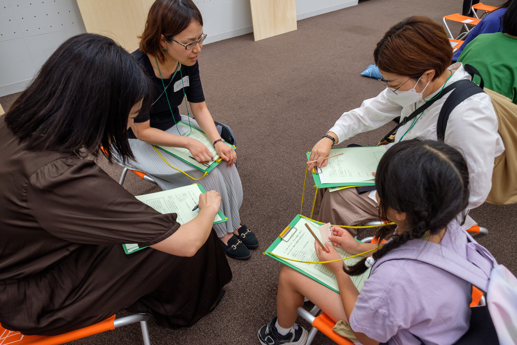 ここからは、グループワークです。金田先生がまず指示したのは、「声を使わず、誕生日順に円をつくる」こと。参加者は指で1、2と表したり、ときに手話を使ったりしながら順に並んでいき、円が完成しました。金田先生はその円を3〜4人ずつ区切り、5つのチームを作りました。