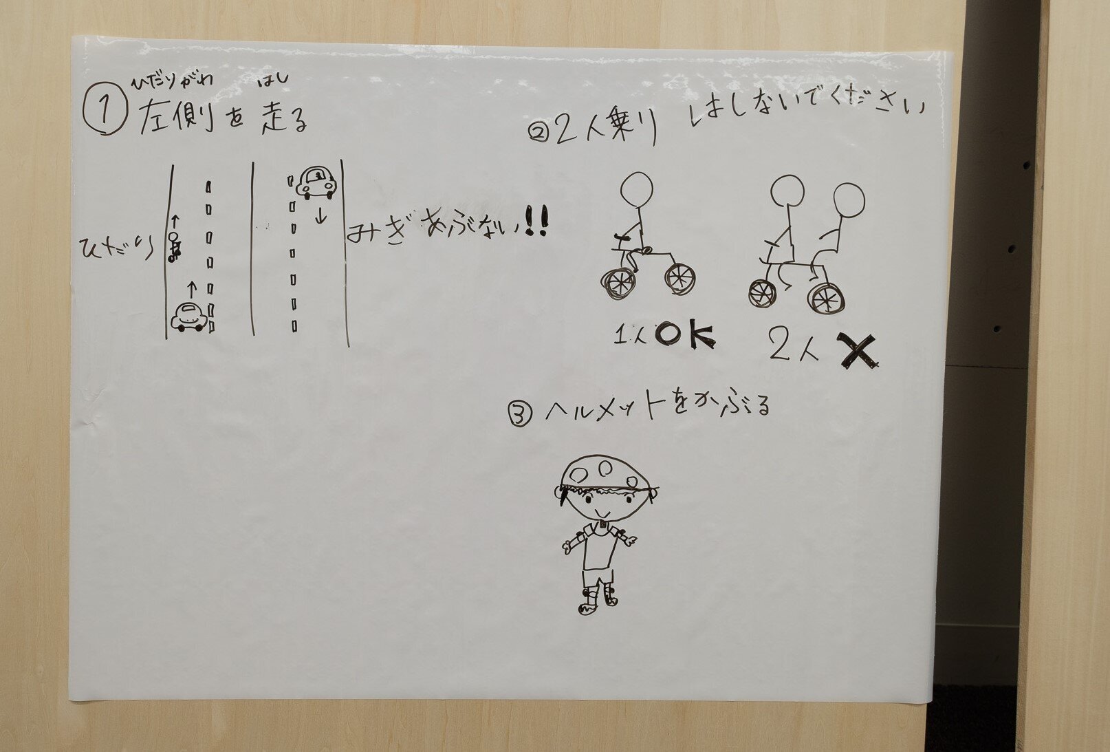 ▲「自転車に乗るときのルール」について考えたチームのプレゼンボード