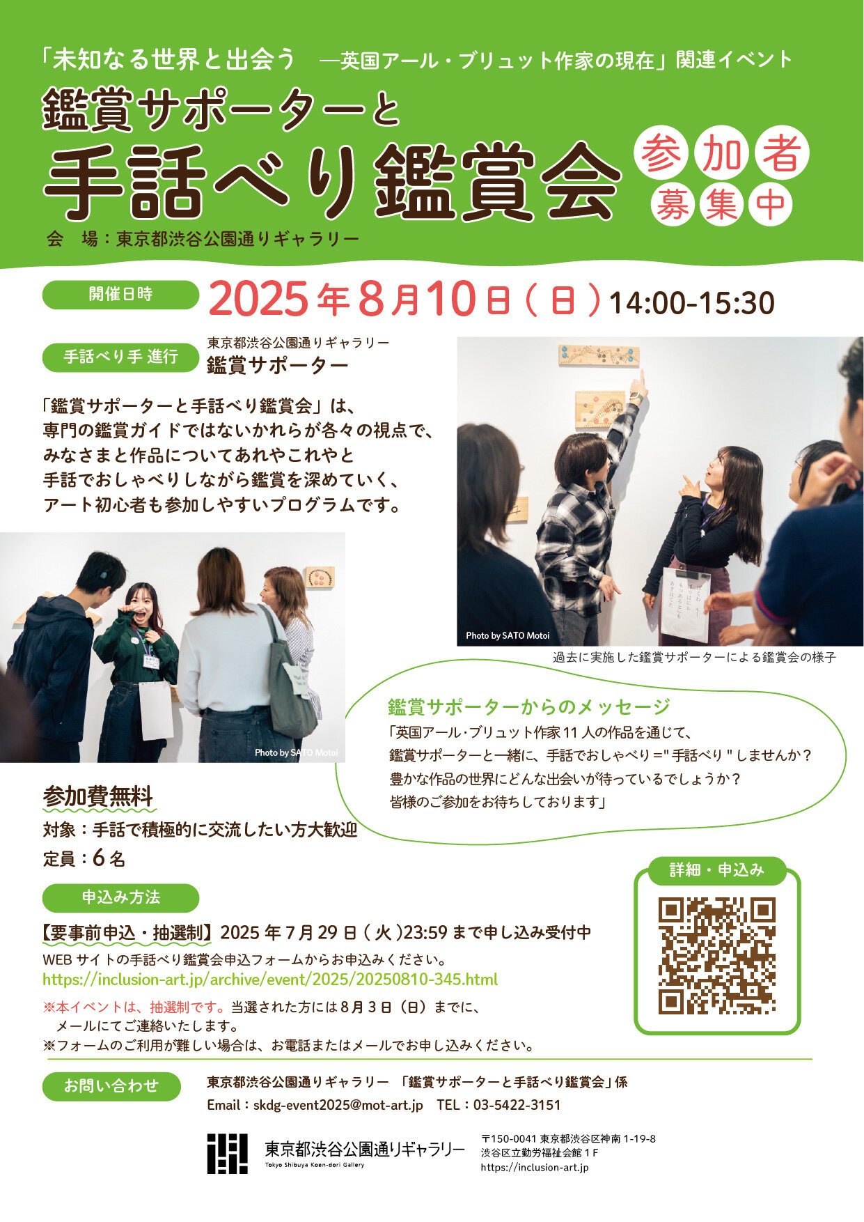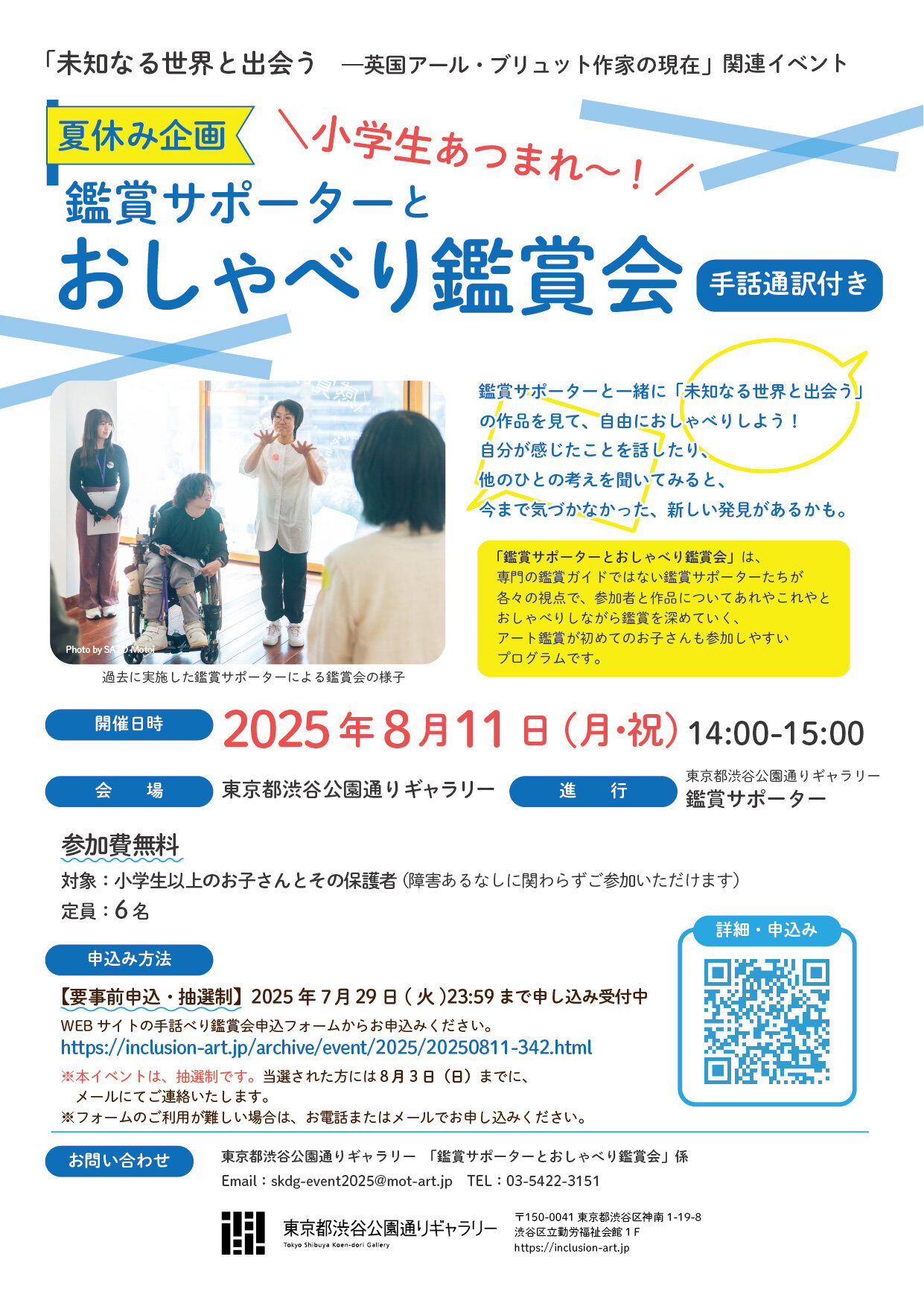 東京都渋谷公園通りギャラリー「未知なる世界と出会う —英国アール・ブリュット作家の現在」関連イベント 夏休み企画小学生あつまれ~! 鑑賞サポーターとおしゃべり鑑賞会手話・車いす