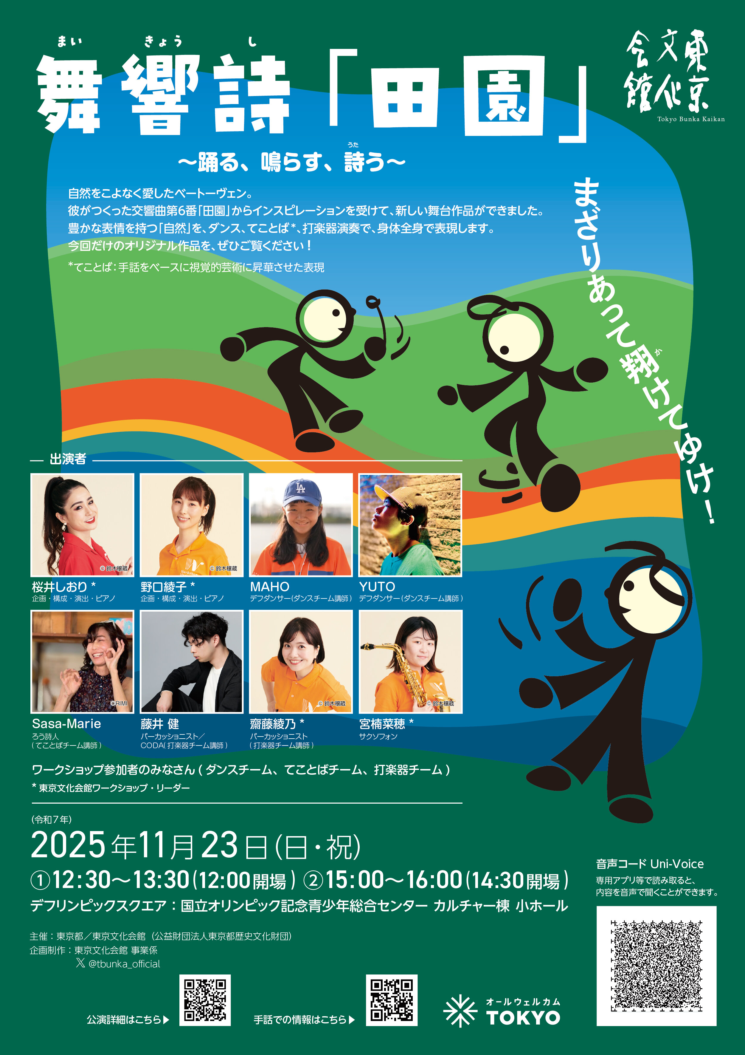 デフリンピックスクエア(国立オリンピック記念青少年総合センター カルチャー棟 小ホール)舞響詩「田園」~踊る、鳴らす、詩(うた)う~視覚支援ツール・点字・手話・筆談・聴覚支援ツール・車いす